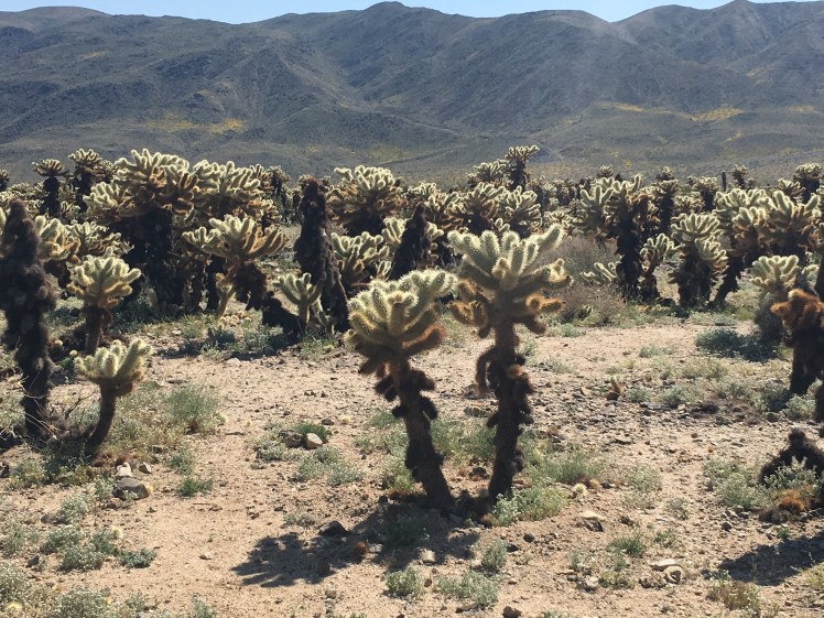 Es war unglaublich schön, den Park mal grün, bunt und in voller Pracht des Frühlings zu sehen. Wir sind im West Entrance -Joshua Tree Visitor Center- rein gefahren, dann einmal durch den Park über Keys View ( Aussichtsplattform Andreasgraben) und zum South Gate wieder raus.