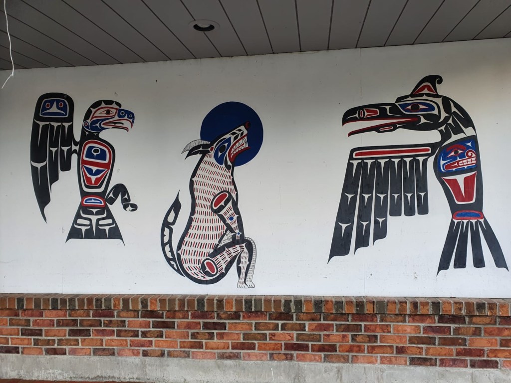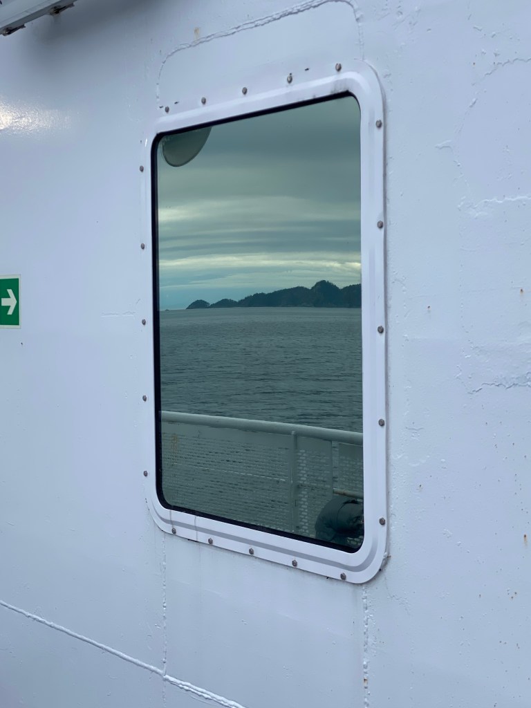 Von Bella Coola mit der Fähre Richtung Vancouver Island. Bella Coola ist nur über den Heckmann Pass erreichbar (Highway 20). Die Fahrt war sehr aufregend, Steigung und Gefälle von bis zu 18% haben unsere Bremsen zum qualmen gebracht. Bella Coola ist kleiner Ort in dem überwiegend indigene Bevölkerung lebt.